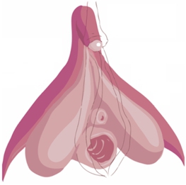 Quando olhamos para a região genital feminina vemos os grandes lábios, que têm pelos, e por dentro deles os pequenos lábios, mais finos e delicados, normalmente fechados. Quando abrimos os pequenos lábios a área interna a eles é chamada vestíbulo genital.